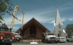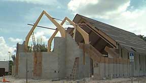 The reconstruction of St. Mark's Church began with selective demolition phase of the project- removing all of the buildings doors, windows, fixtures, roof materials, a/c system equipment and ductwork, finishes, and furnishings- leaving no portion of the building untouched. After the North wall was removed, the traffic-stopping view from North Collier Blvd. was dramatic, as the entire vessel of the old Nave was open to view from the street.